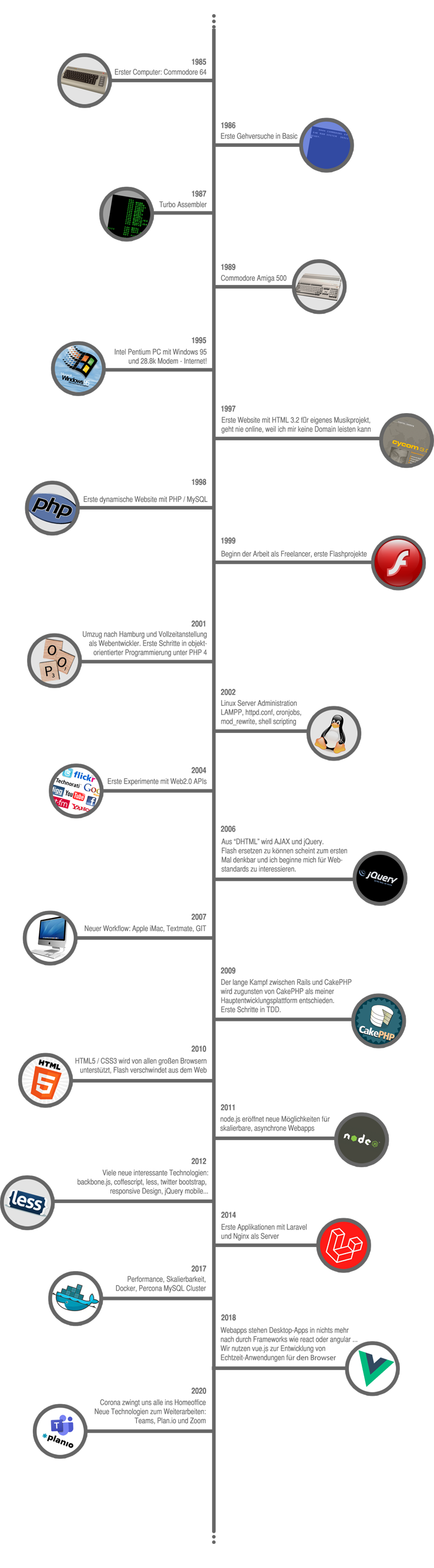• Programmiererfahrung seit 35 Jahren (Basic, Assembler, PHP, Javascript, Python), professionell seit über 20 Jahren